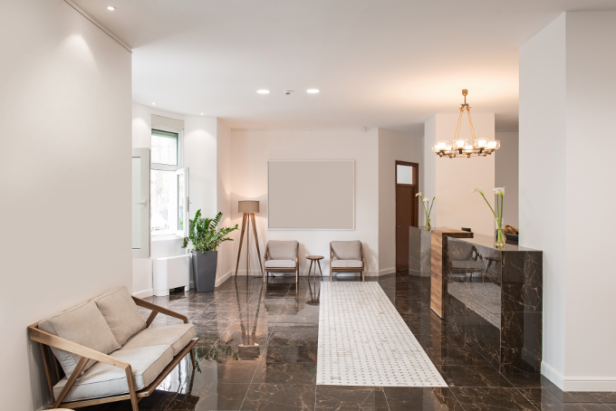 Durabilitatea marmurei va oferi pardoselii tale din hol o rezistență ridicată, fiind materialul ideal pentru această încăpere cu trafic intens. Este important ca pardoseala să nu fie alunecoasă, astfel că un finisaj mat sau periat o va face antiderapantă.